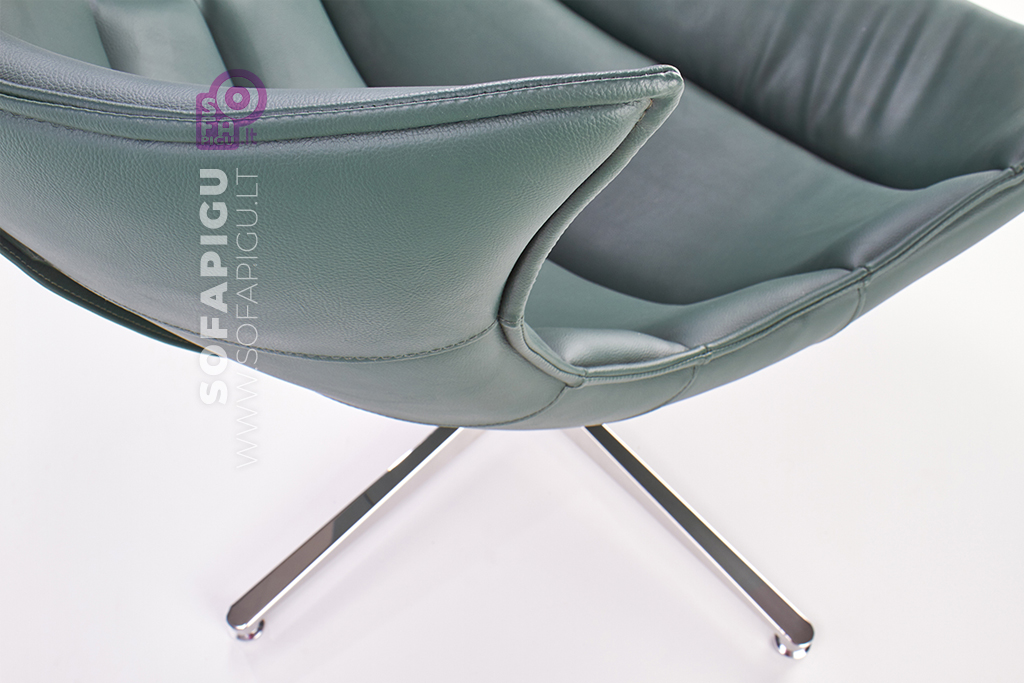 Minkštas, apvalus poilsio fotelis iš natūralios kompozicinės odos.